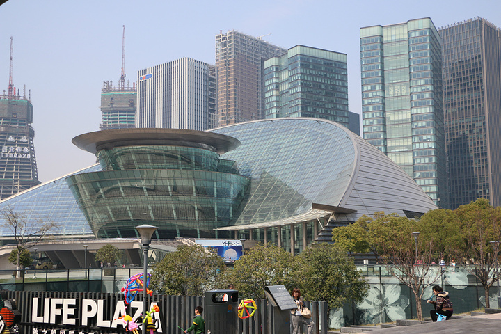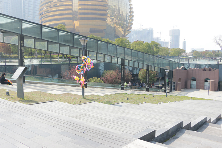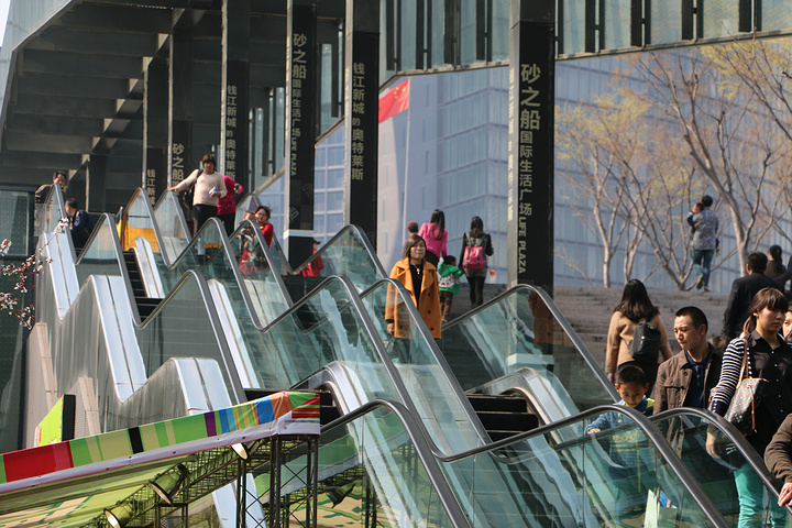 ...到上面的城市阳台,那里很好玩,我经常带着孩子去砂之船和城市阳台玩轮滑,还能看钱塘江,景色很不错