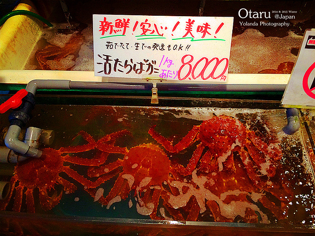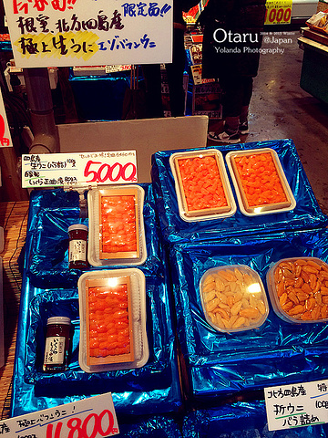 『我身高165,有参照就知道当天的雪有多大了积得有多高了』 在走去小樽运河的路上看到一家卖海鲜的店,刚好又走得很冷,就进去蹭蹭暖气。里面的海鲜都很新鲜,而且有些可以马上吃,像刺身烤贝类什么的,价钱好像也还好。