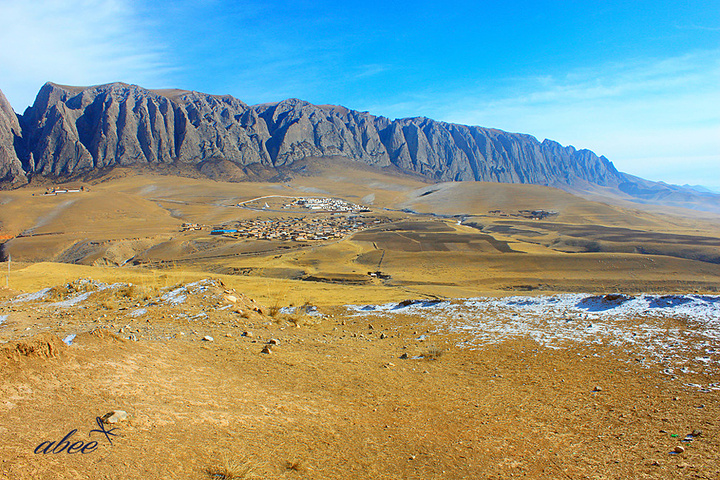 第二天一早,由于刚适应寒冷的天气,我们赖床至9点半,这天的安排是要去八角城,据说是一个从汉代就建成的地方,内心充满好奇和敬仰古人的智慧。遇到3个也要去那的女生,一起拼了车,没个人几十块钱。一路上的风景令人赞不绝口,这是我第一次看到厚厚的雪地而且能踏在上面并捧上一捧雪任其飘洒出去。路途中有很多藏区的羊群,羊群里有一些可爱的小羊,司机师傅说现在是产羊仔的时节。之后我们还去了白石崖的溶洞里面探险,遇到几个零散的游客一起在黑暗中的互帮互助着实让人感动,团结就是力量,从洞里出来时所有人都满身泥土,可是无不露出兴奋的微笑,因为当时处境黑暗气氛紧张,所以没能在洞里留下照片,确实有点遗憾,这是我生来第一次参加探险。之后我们就启程去了一个寺庙,最后途经八角城,但是刚下车按下快门,司机师傅就匆忙让我们上车离开,因为有一些当地藏民要前来收费,最终我们还是被堵在路上几番纠缠后还是无奈交了钱,司机师傅也是藏族人,他对此十分气愤,说觉得这样的事情太丢藏族人的脸了,还嘱咐我们要好好读书,顿时觉得他是可爱之人,返途中后座一起拼车的三个女生同司机师傅一起一路高歌,歌词里有一句“让我们一起浪迹天涯”,我眼睛看着远方一处处绝美的风景顿时湿了眼眶……