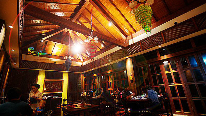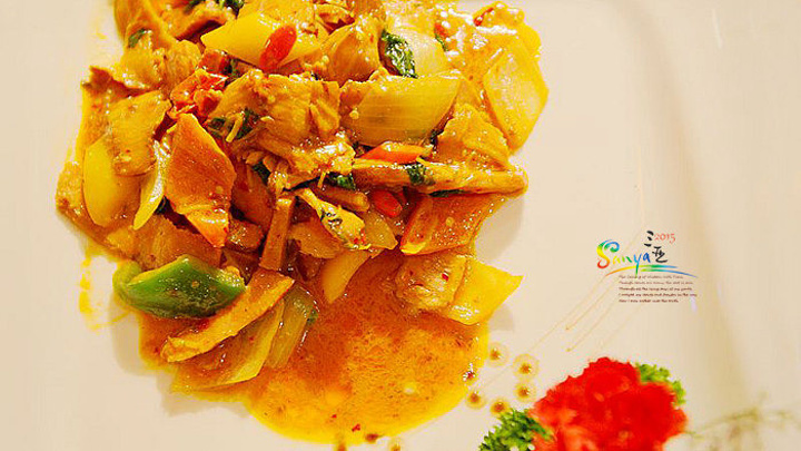 台风似乎让时间加速,很快就到了晚餐时间,晚餐是在大雁区的泰餐厅,全木结构的泰国装修风格加上泰国的装饰,对于去过三次泰国的我来说,冬阴功汤、咖喱蟹与炸春卷是相当熟悉;不过能在距离泰国遥远的三亚品尝到正宗的泰国菜肴,也算是一种通过味觉体验的怀旧旅行…… 餐厅的设计大气简约,宽敞的空间干净利落,厚实木打造的条形硬实板凳,低矮的餐桌摆放着独具东南亚特征的摆设,大地色系的材质,粗木的长条椅,一切都令人感到放松而舒适。天然色系中,几抹饱和鲜艳欲滴的嫩黄,是整个空间的点睛色,带来清新灵动的气息。