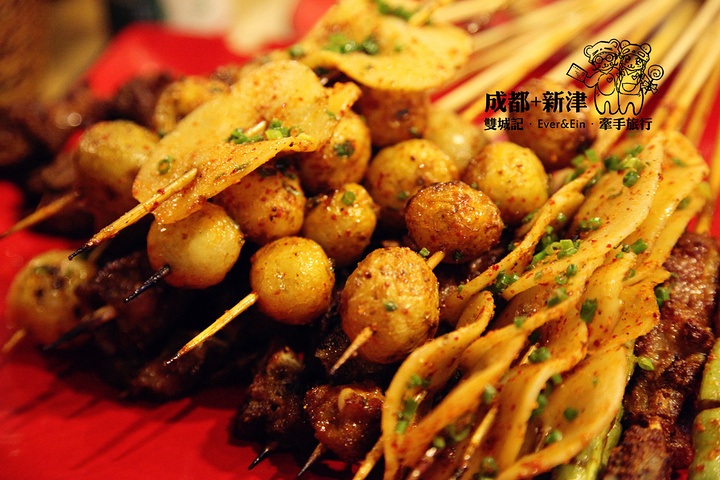 这是一家比较现代改良版的烧烤店,已经在成都开成了连锁,味道中规中矩,装修比较干净舒适,胜在种类繁多,想吃什么川菜类的基本都有。非常适合旅行时间不够的人去吃,在这里不仅可以吃到各种烧烤,还有钵钵鸡、老妈兔头、冰粉凉糕。 觉得非常好吃的有:烤五花肉、臊子蒸蛋(在竹筒里蒸蛋再撒上肉末酱)、烤茄子、烤土豆。兔头还算不错,虽然没法和双流老妈兔头的口味比但也差不多太多。非常不推荐烤香蕉,完全是一道黑暗料理。 价位大约人均40-50的样子,比起一些小烧烤店略贵。