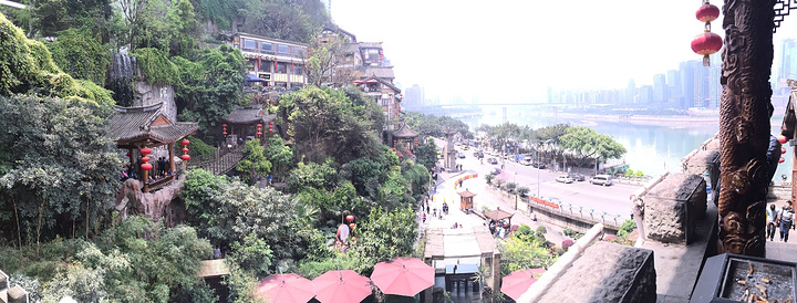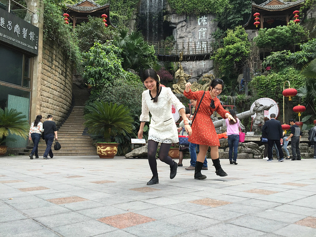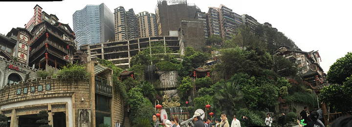 从公交上下来,刚看到这个地方的时候完全没想到它多酷炫,直到我们在观光电梯前发现这是十一楼!十!一!楼!开始怀疑人生,往旁边看完全就是地平面啊呵呵果然太天真,往下看发现自己在山上啊!山上。一层一层下去逛,店铺什么的倒是大同小异没什么意思,从一楼往楼上看还是很酷炫的。。心理层面上。。。反正去了重庆一定要去!