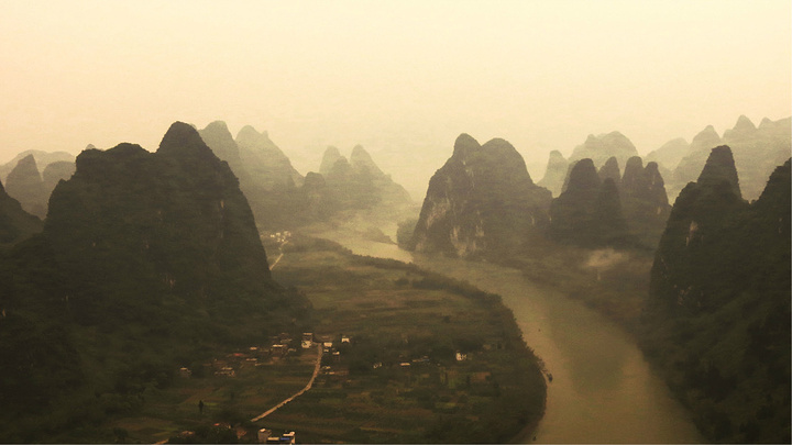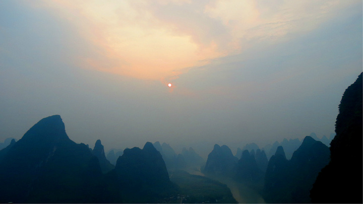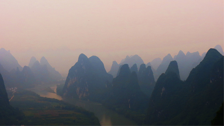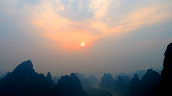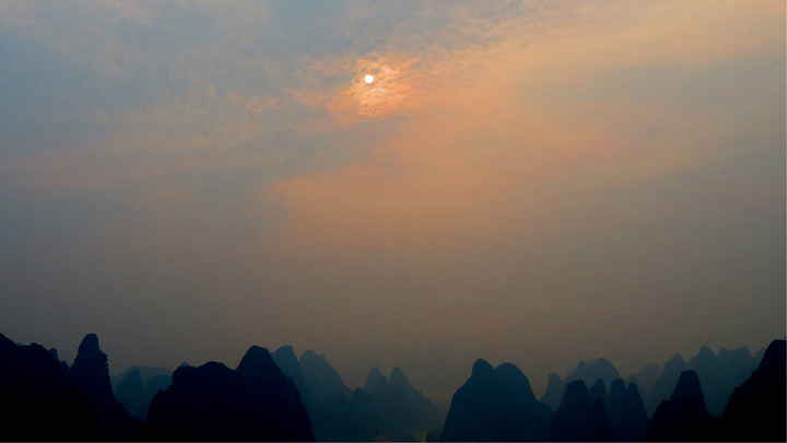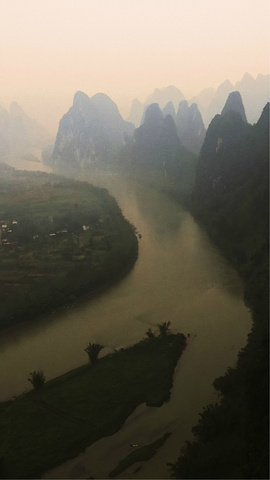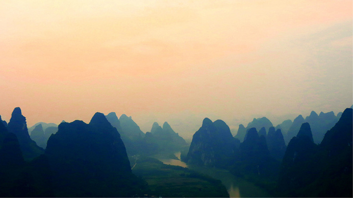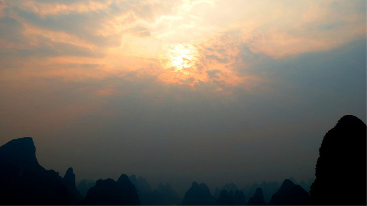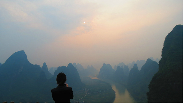 等了整个早上,终于看到有船只从山脚下经过。 于是,我们大声的呼喊:Hello,你们好吗?你们看见我们吗? 有人看过来了!有人向我们挥手了!有人打闪光灯照相了! 我们兴奋得不能自己。 昨天,我们从漓江寻找安静;今天,我们站在高处寻找声音,哪怕是一点点的喧哗。