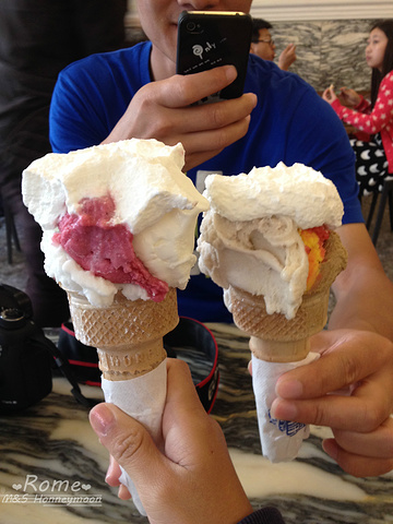 味道真心赞呀,果然最好吃的冰淇淋必定在意大利,就连老公这种在国内拒绝一切甜食的人,都吃得津津有味,竟然还吃上瘾了......最重要意大利冰淇淋甜度并不高,也不含脂肪,所以即使吃很多也不用担心肥胖,爱美的女士们可以放开肚皮使劲吃~~~美味可口还美容又健康哦,绝对是到意大利不容错过的美食!!!