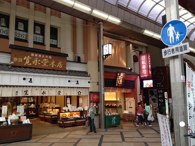 本日心得:奈良的人不多,公园景色美,借的和服明显比京都漂亮,妆也画的好,和服体验佳。小吃比京都多,和果子之类的,到奈良町老街购物也好,吃饭也方便。点心好吃,还买了鱼制品,后面有图。 本日失误:到地铁站出示图片,会指引你到站长室买斑鸠券,很方便,结果我到了奈良就掉了,在奈良也没坐bus,基本走路就行,所以斑鸠券可买可不买,如果在大阪还要逛街坐四次地铁以上,就买了吧。
