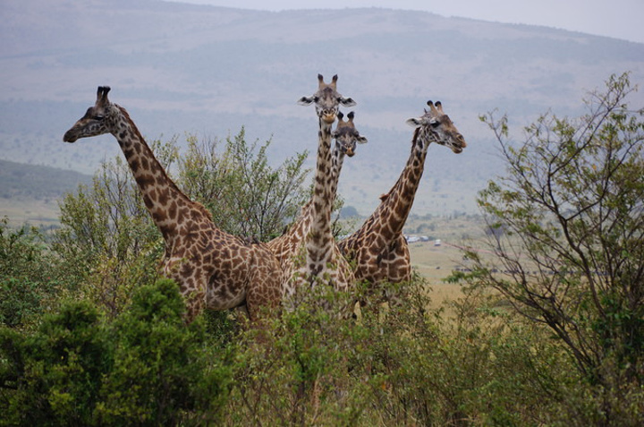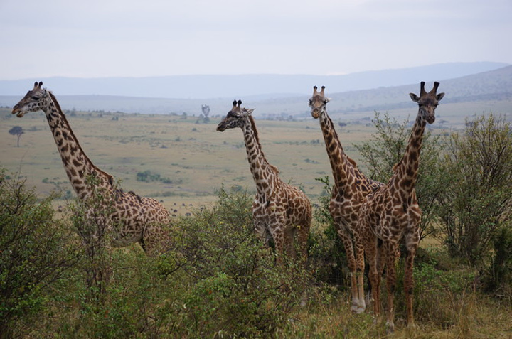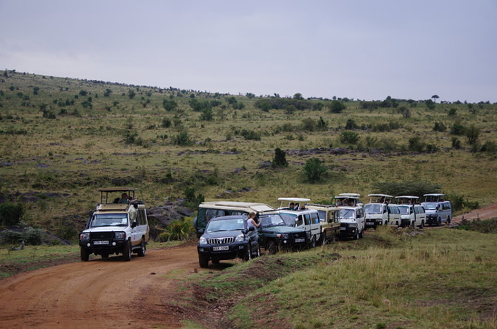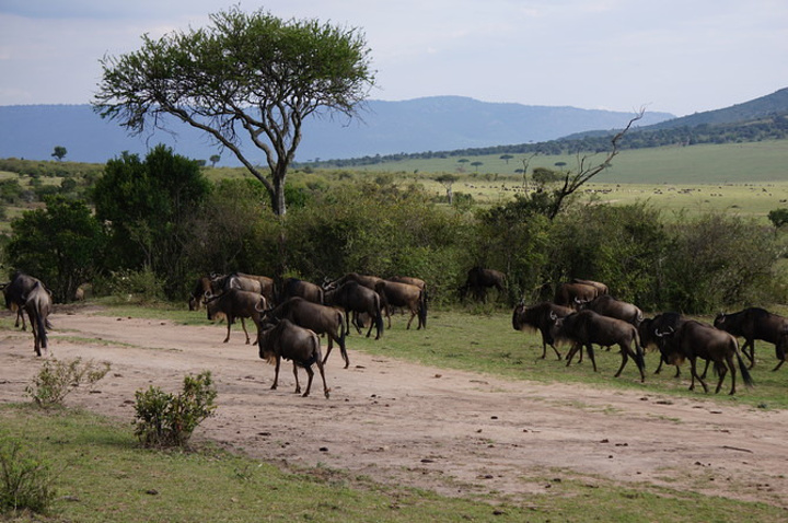 到达肯尼亚已经整整过去了三天,今天将前往马赛马拉,司机告诉我们今天大概会有5小时左右的车程。从纳库鲁湖出发返回往内罗比的方向走,然后在一个不知道地名处分岔,前往马赛马拉,慢慢的村舍、房子越来越少,道路两旁稍大一些的树木也逐渐消失,土地已经没有了人类进行耕种的痕迹,路边出现了放牧的马赛人,我们意识到离保护区越来越近了。其实这一路的风景着实单调,但我们仍努力睁大着眼睛,害怕错过任何一个不期而至的美景。经过5小时的赶路,终于接近目的地,却看到前面的路中间出现了一个大坑,不是坑,简直可以叫做是壕沟,正在想车子会如何绕过去的时候,咱们乘坐的陆地巡洋舰已经一个俯冲开下壕沟,紧接着一阵轰鸣就从另一面冲了上来,这一串娴熟而又连贯的动作,让我们无比的佩服,也对陆地巡洋舰那良好的越野性能不得不。早闻肯、坦从事safari的司机驾驭技术霸道,今日一见果然名不虚传,而后几天包括在坦桑尼亚境内,乘车的过程让我们在享受safari的同时,还多了一样参加达喀尔拉力赛的体验,泥地里的漂移、搓板路上的奔驰、跨越障碍的勇往直前,一样都不少,真心的赞一个!