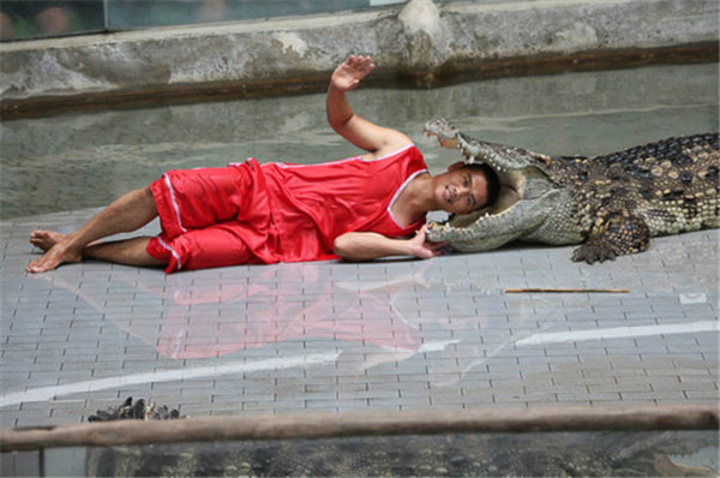 鳄鱼表演还是不错的,看得人惊心动魄的。老是担心那个鳄鱼要是咬下去那岂不是太血腥了,虽然觉得这不可能。但还是担心啊担心,真心觉得这些表演的人不容易。表演完后给了20泰铢小费,希望表演的GG和MM身体健康。