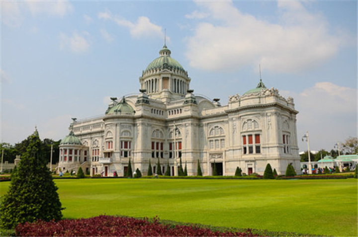 出了大皇宫就去吃午餐了,歇一会下午继续逛。下午的目标是阿南达皇家御会馆,这是一座白色为主的意大利文艺复兴式建筑。室内全以彩色大理石装饰,馆里展示的都是泰国的国宝级工艺珍品。