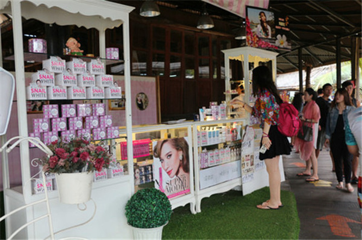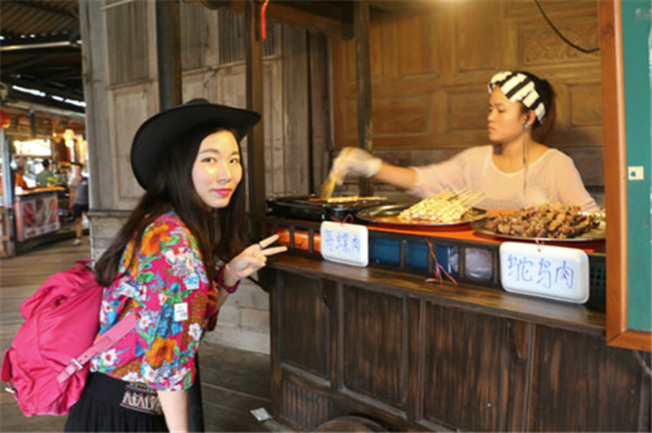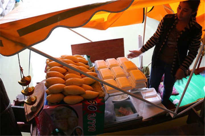 市场不大,由搭建在湖面上的木桥和木屋联接而成。但是各种泰国特色小吃和手工艺品很丰富,一路逛过去,再随着性子买几样自己喜欢的东西,感觉也是很不错的。