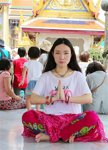 出了大雄宝殿后证实烈日当头,快到中午时分了。玉佛寺人山人海,想拍照找个好一点的机位都没有。那就干脆不拍了,坐在凉亭歇一歇。入乡随俗嘛,我也摆个合适的造型。