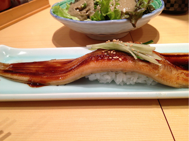 差不多7点同学就到了,我们进去吃寿司喽。我们不懂日语,对寿司也没啥研究,就交给同学啦。其实有一些套餐可以选择,但同学是单点的,真是点了不少!!!而且那个五个一排烤过的寿司可是每个人一份的哟,加上小酒三个人才11599日元,合700多人民币。这在北京吃个将太无二也这个价格吧,品质还不如人家这个好。老妈特别喜欢那个灰灰的蟹粉沙拉~~~那个虾肉做了寿司,虾头人家还给你烤了,直接吃掉!反正我和妈妈都觉得非常好吃,而且性价比相当高!!!!超级推荐!!!