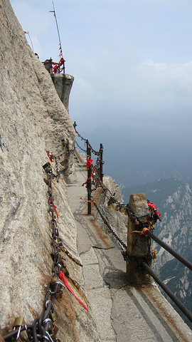 华山现在有三条登山路:第一条是索道,可直达北峰,推荐。从回心石开始,登山路真正开始