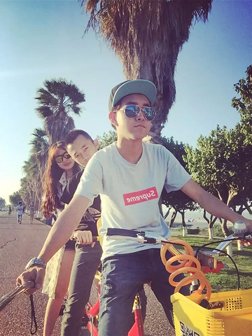 看,我们的三人自行车,我们从椰风寨一直骑到底下那个游乐园,叫什么名字突然忘了, 本来听说附近有在海上的海盗船,我们为了海盗船一路骑到底结果听说已经搬了,好可惜,没坐到。