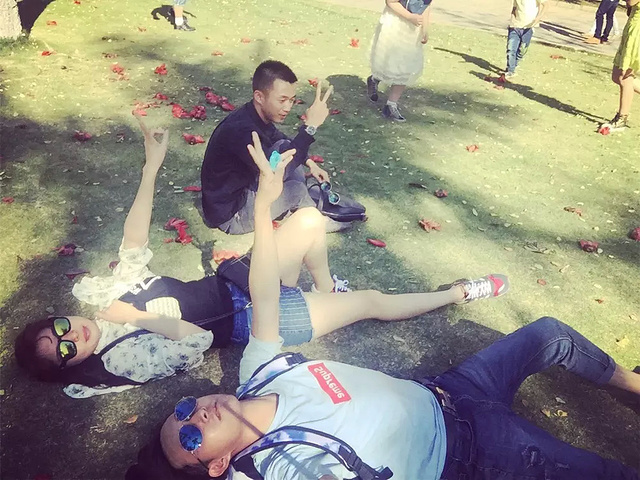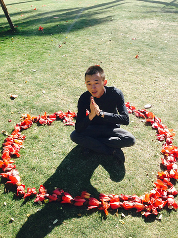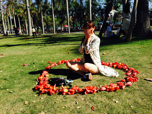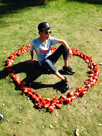 厦大里有很多攀枝花树,因为我和小伙伴是攀枝花的人,所以觉得这个花好亲切,外省人可能叫木棉花,很多游客在地上用花摆不同的造型然后拍照,我们就偷懒直接用的别人的造型~~像被求婚了吗?