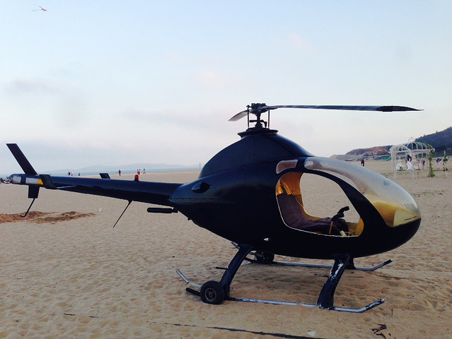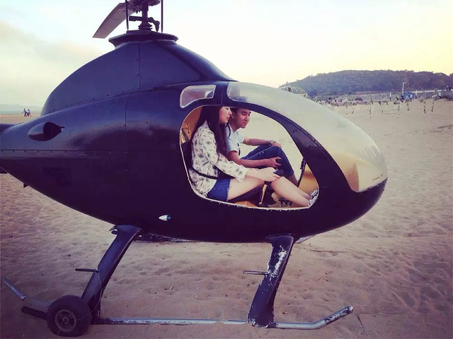 我们从下午骑到傍晚,虽然很累,但是很开心,特别开心。路过一个地方看到很多拍婚纱照的人,停着辆直升飞机,我们就抛下自行车一路向飞机狂奔,哈哈 ,酷吗?