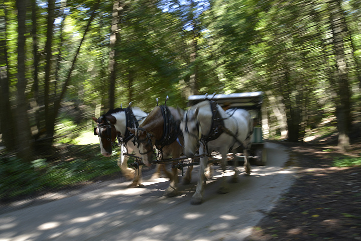Mackinac Island位于密歇根州上半岛和下半岛交界处的湖中。只有乘坐轮渡方能到达。这是一个节奏很慢的地方。 下了登岛的轮渡,仿佛一下跳进了老电影里的场景。长长的街道,林立的彩色小房子,高大的马车,还有往来的漫步的游人。 街道上都是卖些吃喝和手工艺品的小店铺,比起别的地方一水儿的星巴克,Panera bread,这些精致的小店倒有几分私房菜的意思。店铺外墙都是可爱的亮色,让人轻松愉悦。密歇根曾经也是印第安人的地盘,有些部落至今仍然存在。所以岛上的工艺品店里不能免俗的售卖一些“印第安”产品,不过大都是Made in China的。。。 糖果店,里面的Fudge有的是现熬的,超大的锅,满满的全是糖啊!虽说小岛不大,“闹市区”也就是刚刚上岛的一小段,剩下的就是自然风光了。骑自行车环岛是游览的最佳选项。轮渡下来走几步便能看见几家租自行车的铺子。虽然骑车1小时便能回来,个人还是建议租两个小时或者以上,这样途中才能有时间去静静欣赏湖岸边的风景。 环岛的自行车道非常舒适,没有什么起伏。可是岛其实是有小山丘的,并且很多风景是在山上。所以在骑行途中,能看到一些景点的标志,这时候不妨下车步行,上山探秘。 岛中央的小山上远眺,碧蓝的湖水连天。不负五大湖的盛名。马车的马比起平时见到的要高大很多,悬殊距离应该有普通人和姚明的区别了。应该是特殊品种吧。作为一个爱发呆的人,好羡慕这些可以飘在水面上发呆的鸟渡轮从早到晚有很多班,所以不妨清晨过来,在岛上轻松玩乐一天,再乘坐傍晚的渡轮回去吧。岛上也有旅馆,不过收费略贵,和Key west 有一拼了。 Finally,上图 Mackinac bridge 结束。