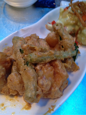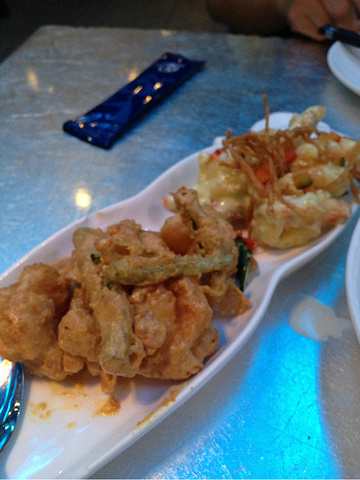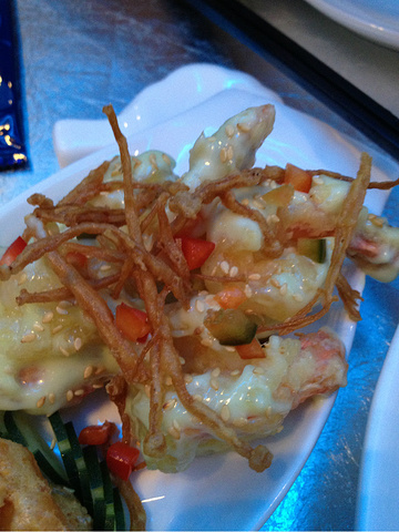 我们点的鸳鸯虾球不错~游完泳我们就去金沙mall里吃东西,想去一个朋友介绍的“渔”餐厅