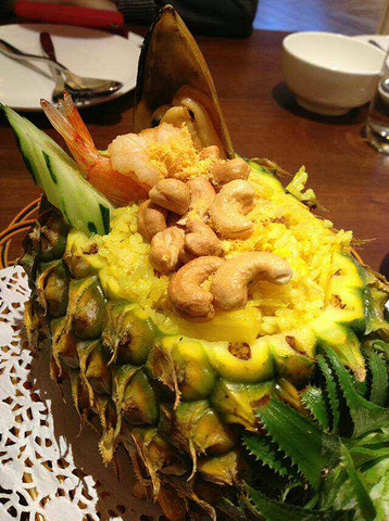 【Location】岭南天地里面靠近建新路那边,看岭南天地里面的地图,位置也不难找。 【Service】环境比较小清新,不过在岭南天地这样的旅游景区就是要有亮点才能吸引人进去嘛。服务员态度也并不错的,点菜热情介绍耐心解释。店面不大,人比较多,需要等位。但是这个泰国菜的价格还是有点小贵。 【Food】*咖喱*咖喱是泰国菜的一道常见菜式啦,不同的店做的也不一样,有些店会适应中国人口味进行改良,而有的则最大限度地保留泰国原味,这家的咖喱还是不错的,也比较正宗。咖喱配白饭我觉得真的好棒。*无骨凤爪*是这家特色,也多人点,里面真的完全没有骨头,吃起了每一口都是肉啊。这个菠萝饭忘记了叫啥来着,是不是很吸引呢?腰果脆脆的,配上菠萝的酸甜,很开胃。