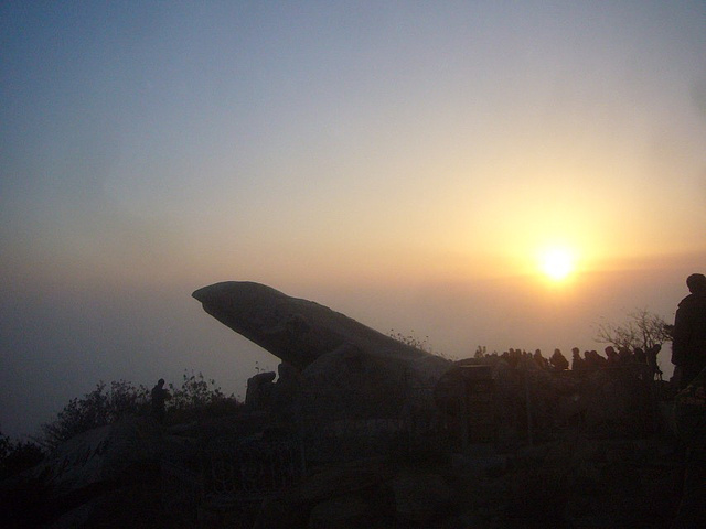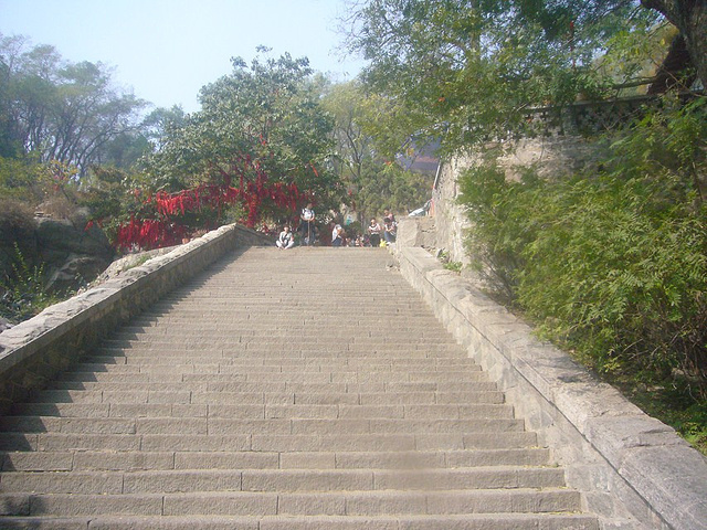 泰山来北京之后我一直都挺想去的,据说有7千多台阶,泰山位于山东省泰安市,主峰玉皇顶海拔1545米,泰山有“五岳之首”、“天下第一山”的之称,五岳包括:东岳泰山、西岳华山、南岳衡山、中岳嵩山、西岳恒山。我是提前下了班之后坐火车T31的车到泰山的,5个小时多点,到泰山的时间是晚上的10点,然后打的到红门登山处,打的10元,离火车站不远。如果平常不经常出来运动的人可以在山下买商家自制的拐杖,2-3元一根。有拐杖爬山稍微好点不太费力,也可以做到一个支撑作用。泰山门票分淡旺季:旺季(2月1日-11月30日)127元,淡季(12月1日-1月31日)102元,带上各种有优惠的证件吧。想看晶出所以选择夜爬,夜爬感觉不到累,用了4个小时就到了南天门。再往上风是越来越大,所以提醒去的朋友们做好保暖工作,也可以在那里租大衣,不贵。找个看日出的好点然后静静地等着看日出,如果还早的话找个避风的地方睡会。早上日出看完去看看五岳独尊的碑,拍个五元钱背面的画面。然后可以走下山,延路还有很多的石碑,都是皇帝题词的,因为泰山自古以来就是皇帝封禅和祭祀的地方。这次的出行有点遗憾的是没有看到云海,还有就是上山容易下山难,从早上下山走到下午2点,太累。