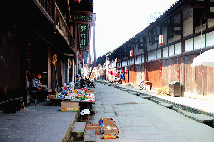 我们俩去找住宿,古镇真的游人稀少,别说三三两两,整整一天我俩见到的游客估计才能用三两来形容……我们找了一家有wifi的住宿,套间60元一晚,里外两个房间,非常适合我们,老板人也很好,邀请我们和他们一起看电视,是一个很快乐的小伙子。 已经晌午,该去进食了,我俩把东西一放,就出门觅食了,这里盛产一种花生饼,大饼1元,小饼5角,很好吃,因为地处陕甘川交界处,所以既有陕西的面皮,又有四川的川菜,适合南北诸人。因为游人稀少,所以古镇很多餐馆都是闭门状态,我们随意挑了一家饭馆,点了面皮、粥、饼,吃的很饱,才一共9元,不得不让我们感慨物价只便宜、民风之淳朴。 古镇很古朴,我们行走在回龙场中,看着当地居民闲坐在家门前闲谈,古镇的猫猫狗狗自娱自乐~一切烦恼都会抛诸脑后,我们就这么逛着走着聊着~