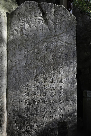 慈云岭造像,是杭州诸山中最古老的石窟造像,也是规模最大的吴越国造像,有“吴越瑰宝”之称。 大龛的左侧,有宋仁宗的“佛牙赞”碑。释迦牟尼真身佛牙舍利,由唐朝的僧人悟空从北天竺罽宾国犍陀罗王城取回,后被宋神宗藏于开封大相国寺西塔。 然而碑额尚存有“新建镇国资延遐龄石像之记”十二个篆字,想来该碑原为钱弘佐凿石佛之记。经考证,原刻中的“遐龄”,该是“禅院”二字。