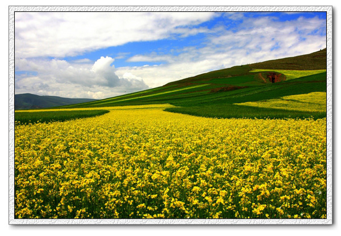 婺源的油菜花已经很负盛名了。据说门源的油菜花才是全国最大规模最大的,一路上想像着60万亩的油菜花会是怎样的盛况。到达祁连时,淅淅沥沥地下着小雨,手上缠着相机带的我,心里哇凉哇凉的。今天算是毁了。先去吃了中饭,边吃边等,天上厚厚的云竟然慢慢散开去,雨渐渐停了,天空露出了些许蔚蓝。