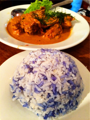 点了几个菜,都是小伙子推荐的经典 仁当咖喱鸡19.8rm,配了一碗蓝色椰浆饭1.9rm