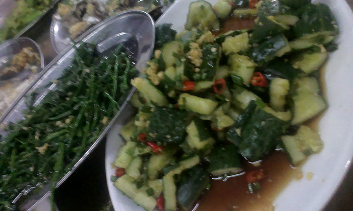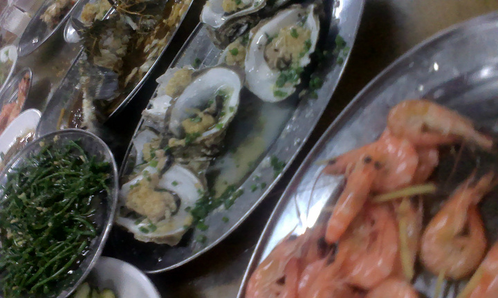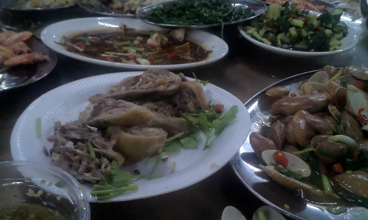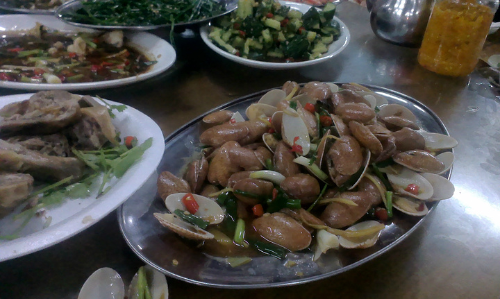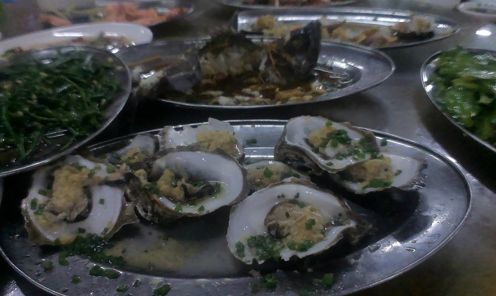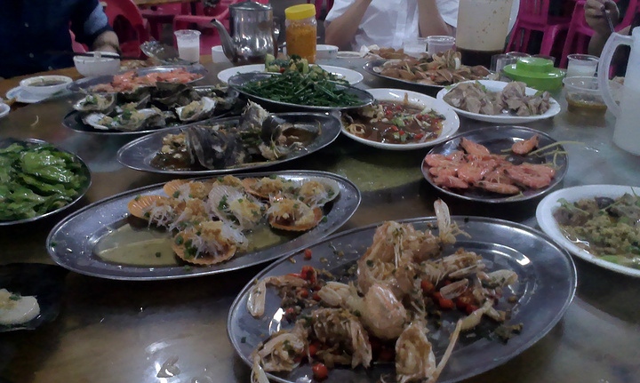 很丰盛哦,海鲜挺鲜美,青菜味道也可以。我们在11排4号加工的海鲜,感觉这里卫生做得很好,味道也可以