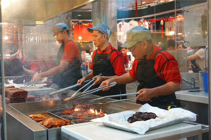 Chinatown有很多出名的店面,不过我们刚到,还没有买伴手礼的想法,所以只是逛逛。新加坡老字号的“美珍香”主要经营肉松、肉干一类的产品,在东直门来福士、大悦城都有专卖店,显然新加坡的工作人员看起来更加干劲儿十足,热火朝天,要不是我已经酒足饭饱真想来两片尝尝啊!