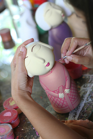 超喜欢椰丝蛋糕! Have a Hug的椰丝蛋糕我认为是清迈最好吃的。越式蔬菜卷也好吃,每次去这两样都是我必点的,只是椰丝蛋糕有时候会吃不到。咖啡店的另一边是陶艺工作室,带朋友去的时候都会领他们到那边去逛逛,可以买一些可爱的陶土娃娃回去当纪念品,这里的每一个娃娃,身上的花纹都是独一无二的喔!
