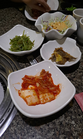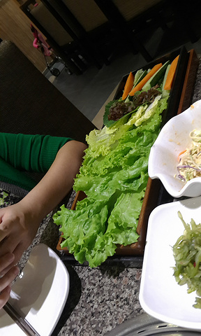 这家永旺是家门口新开的,里面有不少吃饭的地方,其中包括这家韩罗苑,一直以来吃过不少韩式料理,对于韩罗苑念念不忘的就是这里的小料,在任何一家其他的韩式料理吃不到的小料,可以直接看我的图片,个人觉得韩罗苑的五花肉配这个小料是绝配,胜过辣酱。 言归正传,先说一下位置,这家韩罗苑在永旺的一楼,在一群吃饭机种区域,非常好找,直接开车到永旺的地下停车场,非常大的一个停车场,目前免费,非常棒,进入停车场后左传走到第一个电梯区域,直接找个地方把车挺好,坐这个电梯上去,就到了吃饭集中区域,然后顺着走就能找到这家韩罗苑。 这家的面积不算小,我们到的时候客人并不多,不需要排队直接入座,装潢和其余的韩罗苑并无太大差别,这家是使用电子烤炉的,所以没有油烟,座位之间的空隙很大,也不算太吵闹,就餐环境感觉不错。 点餐前询问了服务员可以使用团购,于是直接上手机购买了2张面值100元的团购券,我们一共2个人吃饭,点了2份猪五花肉和1份烤羊肉,一份大酱汤,1份泡菜炒饭,为了凑足200元,又要了炒年糕和炸蔬菜,一共200多一点,服务员一直帮我们计算总金额,赞一个。炉子改用电子的之后少了油烟,也不用担心炭火时间久了热度不够,电子操作温度很方便,但是总感觉肉烤出来的味道不如炭火的好吃,尤其体现在最爱吃的五花肉上,吃的时候少了以往的那种香味,非常遗憾,但是烤羊肉却给了我巨大的惊喜,本来是不知道点什么才要的羊肉,没想到味道超级好,提前腌制过的羊肉,烤完特别好吃,而且不用蘸料,羊肉味十足,只需要烤的稍微变色就可以吃,不需要等烤熟,口感更好,大酱汤味道中规中矩,泡菜炒饭是媳妇一直爱吃的,我对那个没兴趣,两个为了凑200元而点的炸蔬菜和炒年糕非常失望,炸蔬菜几乎没动,一点不好吃,不知道都是什么怪异的蔬菜,炒年糕,年糕条特别硬,然后还没有味道,只有表面那一点酱有味道,里面一点儿味道没进去,两个都不推荐,韩罗苑的小料还是一样迷人的味道,自助的一人7元,我俩吃了4份,送的小菜无功无过没有太好的,也就南瓜粥还行。整体来说吃的还是很爽很饱的,羊肉是意外惊喜,以后主点这个。 说一下服务最让我欣慰的地方,结账的时候服务员发现我买的团购券是80元钱100元面值的,友情的提示我这家店可以用60元100面值的券,并告诉我80的那个可以退掉,然后再买60的,等我买好再帮我验证,实在没想到,为顾客省钱,非常欣慰!冲服务也给五星了。