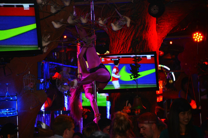 老虎酒吧的美女在表演钢管秀