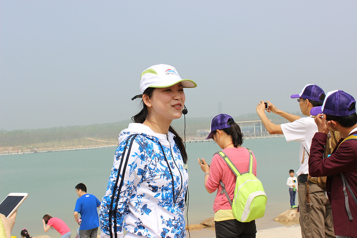 美丽的导游在镜湖旁边为我们讲解着,衲田花美,比花更美的是讲解员。相关参加剪裁仪式的人已经陆续到了