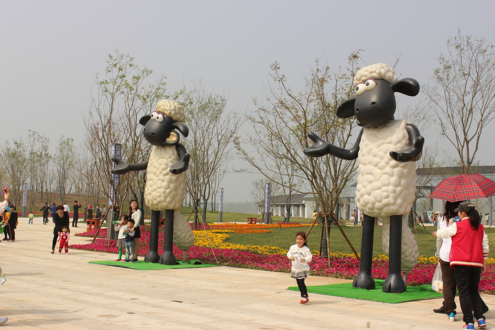 从景区的大门进来,先到的是镜湖景区,看到了动漫品牌可爱的小羊肖恩