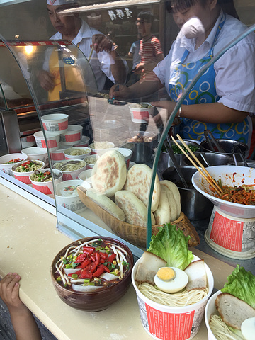 紧挨着武侯祠的一条古街,慕名而来的游客非常多,小吃街上的小吃只能说是一般而已,只觉得菠萝饭的味道还不错,酸酸甜甜的。老陈荞面家的凉拌荞面味道不错,有点像怪味凉面呢!