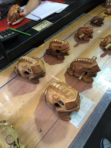 招财蛙,用青蛙嘴里含着的小棒刮它的背部,会发出类似青蛙“呱呱呱呱”的叫声,挺有意思