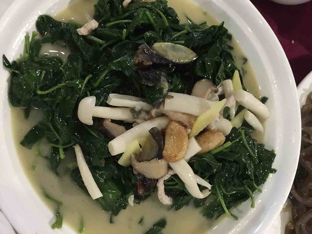 杂菌煲,根本没入味,花生末红薯粉,说实话,不好吃,油腻的很。唯一好点就是榴莲角和青菜。怎么说了