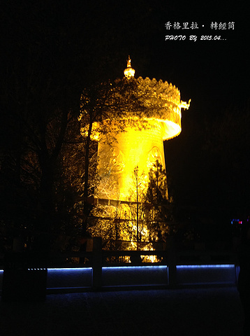世界上最大的转经筒:转经筒高 21米,总重60吨,是世界上最大最重的镏金纯铜转经筒,载入了吉尼斯纪录。转经筒筒身为纯铜镀金,筒壁上高浮雕文殊,普贤,观音,地藏四大菩萨。下层为佛家八宝:法螺,经轮,宝伞,百盖,莲花,宝瓶,金鱼,盘长。筒内藏有经咒,六字真言124万条和多种佛宝16吨。筒顶为比筒身直径明显大的圆形“伞盖”,轮座为巨大的滚珠轴承,轴承外围为直径约十公分的不锈钢管弯成的大环。环上有挽成圈的布条带,用于多人拉动经轮转动!