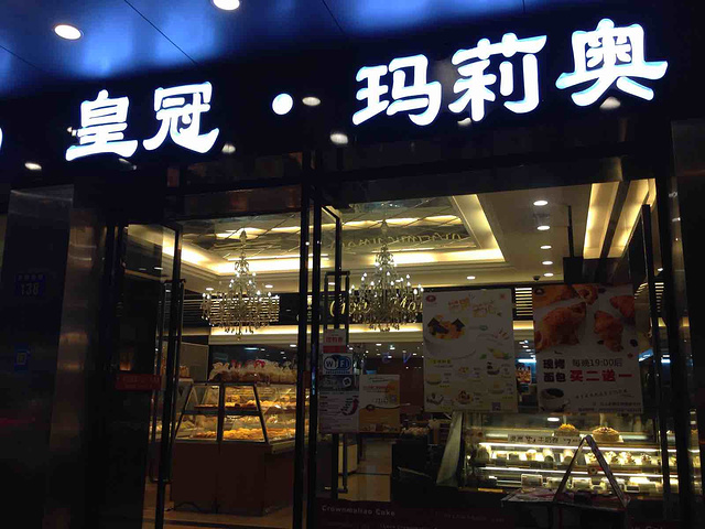 皇冠玛莉奥是1993年创立的本地糕点连锁品牌,可以说是这里的“面包之父”,本人自小就经常光顾这里,可以说18岁前的生日蛋糕都在他们家订的。他们的规模大,种类多,价格是连锁品牌中最便宜的。每逢佳节他们家都会推销一系列的应节产品,如月饼、年糕、粽子等,送礼还是很体面的。 此店位于西丽路繁华地带,乘坐番3,6,15,27,30,68号公交车在西丽路站下车,然后直走约300米可到,沿途会路过天汇百货。店铺两边分别是采蝶轩和绿叶居,这三家糕点巨头是相连的。唯一不便的是,有小车的朋友停车比较麻烦,店铺门口是不准停车的,但对面路边可以打表停车。 店面装修简约,中央空调,有免费wifi,室内宽敞,餐桌数张,可以在店内吃喝。店铺现在有自己的储值卡,也有现金团购等。近几年还与时俱进的添加咖啡、奶茶、果汁等系列,价格5元~15元。但有一次去的时候说只有果汁可供应。早上提供新鲜豆浆,3元/杯,另外冰箱里有几个品牌的牛奶供应。早上上班时间和傍晚下班时间人流特别多,大家尽量避开这两个时段。 这里的蛋糕和面包都很便宜,刚出炉的面包非常松软,小时候最爱吃这里的肉松面包和菠萝包,随着物价上涨,这里的菠萝包也从5毛钱升到2块钱了,但做法也有改变,以前是没有内涵的,现在有红豆在里面,我最不喜欢红豆,所以很久没吃了。小时候第一次吃葡挞是在他家,最近有买一送一,每次经过都会买上一盒与家人分享,新鲜出炉超好吃!有时会碰到挺多人在排队买蛋挞的,看来确实是很受欢迎哦。还有每年的中秋都会在这订几盒冰皮月饼,包装是铁盒的,上一次买了一大箱太重搬不动,都是由皇冠的员工主动帮忙抬到家楼下的,那时还下着毛毛雨呢,服务确实不错。 随着另外两家糕点巨头搬到他旁边,在巨大的竞争下,我认为提供服务质量是有必要的,昨晚买面包的时候随便拍了几张相片,穿制服的服务员都在忙,最后一次拍得比较明显,却被一个白衣女士告知不能拍照,态度不是很友好。后来我在外面观察过好像没有发现“不能拍照”的字眼显示。 吃喝完毕可以到对面的服装商业街逛一下,不是品牌店,衣服质量和设计都不错,只是价格太贵,一件T恤两百块,附近还有发廊、首饰店、药店、银行等。再往前一点是各类美食餐馆了,消费是中下水平,可以尝试。