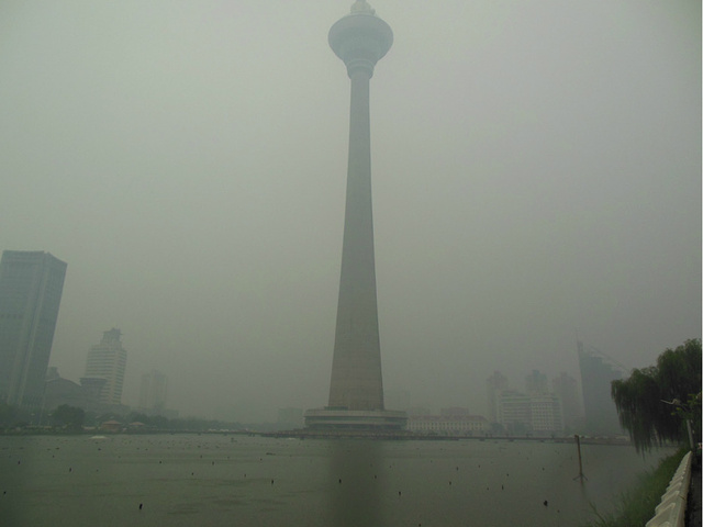 游览完这里,早上淅淅沥沥的小雨变成了瓢泼大雨,赶紧打个出租去天塔,不过由于天气原因,天塔成为了一个遗憾。。。天塔门票50元,学生证半价~