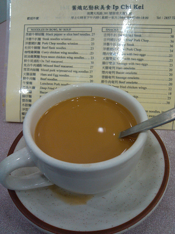 在南湾大马路那边找餐厅吃饭可选的地方不是很多,那边餐馆少一些,一路上只看到这家劲秋美食店,5点多才来这小店,店里面电话不断,都是叫外卖的多,人手不太够,给了一个过塑的菜牌我,店员就继续忙了,送餐的送餐,接电话的接电话,结账的结账,真的像打仗。点了奶茶歇脚,做了一会,当地的澳门人突然跟我说,这里的奶茶和咖啡好喝啊,可以喝多一杯,哈哈!确实很棒的奶茶,没得说的!