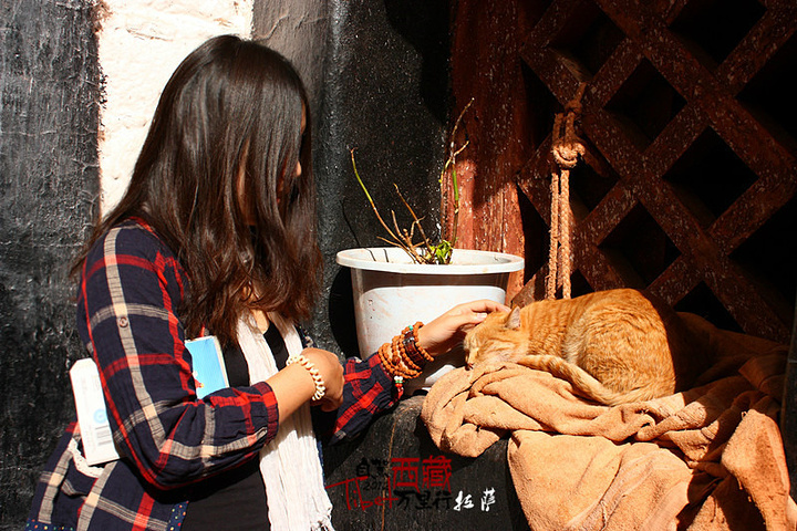 布宫里面不许拍照,因此记在自己脑子里就好了。 可以蹭导游,不过我是拿了一本藏羚羊的自助游书,边走边对着看的。 出了宫殿,还在布宫里面的时候就看到了这只小猫。