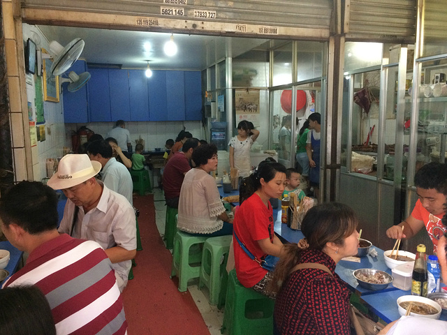 市区一日徒步游 我的航班比小伙伴们的早出5-6个小时,这得感谢南航取消了原本的航班。9点半我抵达贵阳龙洞堡机场,10点15我已身在贵阳市区。 话先说在前头,这是我在贵阳朋友所推荐的几个地点的基础上,自己实践摸索出来一条游玩线路,事前未曾看过LP或其他旅游资料。如有雷同,纯属巧合。贵阳龙洞堡机场乘机场大巴抵达省展览馆站,以此为步行起点。这条路线全程长约3公里,结合了吃喝游,2小时可轻松完成,囊括贵阳市区经典景点:首站河滨小学旁巷内,品尝老贵阳全牛肉粉,而后沿遵义路向北直走,经人民广场和省民族博物馆,感受当地公园文化。继续前行,遇南明河,转沿河岸继行,经黔明古寺和周末旧货古玩市场,直至甲秀楼和翠微阁。游玩后,依中华南路,北行抵达德书院旧址,这时你发现自己已经处于贵阳市区的中心地带——繁华大十字,附近的省府路、陕西路、富水北路和恒峰步行街则云集了各种小吃。 如果体力充沛,可在参观完甲秀楼和翠微阁后,拐入西湖路至南明东路,前往18号喫茶公馆(整栋的民国英式别墅文物建筑),品下午茶小憩,比上述线路多走1.5公里,后前往达德书院。 下车后,我先去找最最想念的牛肉粉。这家“老贵阳全牛肉粉”[地址:贵阳遵义路(展览馆对面)近河滨小学内巷] 我专门研究过,比较多的评论称“这家牛肉粉好吃过市区的王记牛肉粉”(仍不及花溪当地的王记牛肉粉)。没想到,真是被我找对了地方。还没走近,喷香扑鼻的牛肉原汤的香气啊。8元一碗,半人高大白桶装的泡酸菜任加,厚厚满满的铺一层牛肉片。队伍还有点小长,做粉的师傅见我拍他,难掩紧张,差点把递给我的牛肉粉给洒了,还差点人扑倒在墙面上。提味的花椒粉和干辣椒面,淋点醋和酱油,这思念的味道啊,和小时候的记忆吻合在一起,地道好吃得我直想哭。没有游客,都是本地常客,就那样看看我这个表情怪异的不速之客。