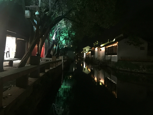 夜晚的周庄 晚上的周庄还是很美的,少了几分喧哗,多了几分宁静。夜风瑟瑟,还是有点冷的。到了这时候,跟中午人来人往相比,又有另一种感觉。