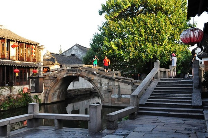 然后就来到了著名的双桥,位于周庄中心位置的世德和永安两桥,建于明代,两桥相连,样子很像古代的钥匙,又称钥匙桥。因出现于旅美画家陈逸飞的油画《故乡的回忆》中而闻名。