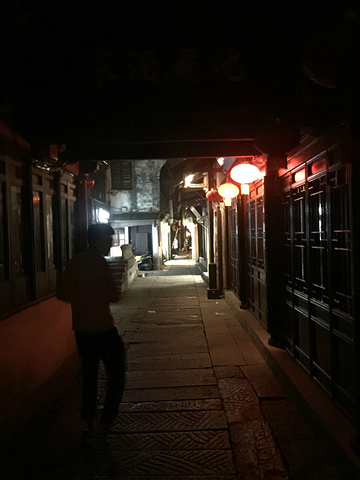到了晚上,喧闹声还是不断,想等到人少一点再出去吧。到了十点,走出了客栈,已经没有检票员检票了,随意出入景区,感觉门票白买了。两岸的商店也很是人少