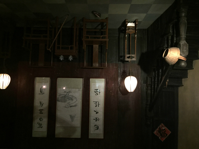 看了半老天,也没发现屋主的秘密是什么。郁闷 逛完怪屋,两个人走了一天毕竟累了,就准备去吃饭了。 随便吃了点小吃,有名的万三蹄看见太腻了就没敢吃。然后就赶紧回到房子休息了。