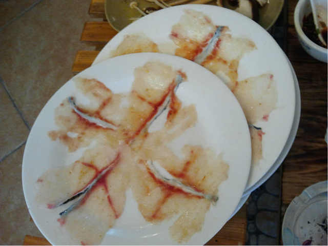 薄薄的班鱼片,可以看出师傅的刀工,,和老板的小气