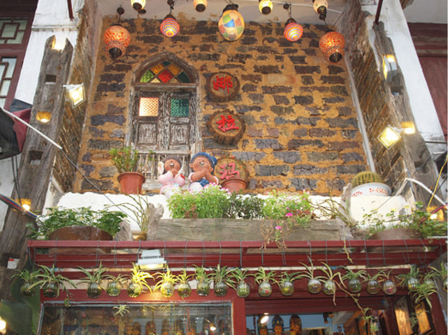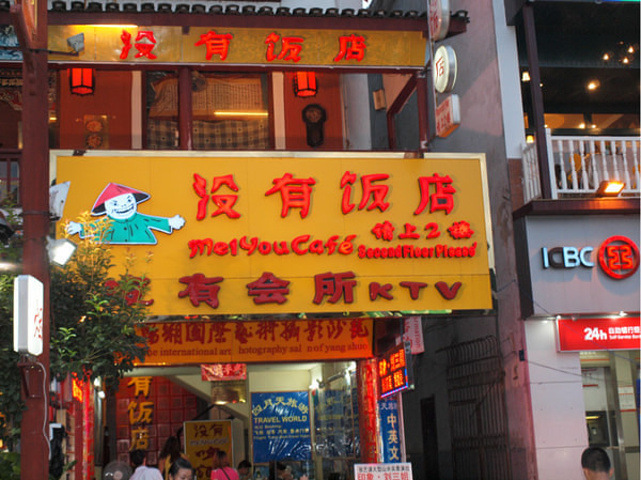 现在这儿是完全的中西合璧,西街上的饭店、餐馆、网吧、酒吧都有,几乎所有的招牌都是中英文都有。全国各地的古街改造的经营形式都差不多,精致的个性小店,邮寄明信片,各种酒吧商店之类的呀
