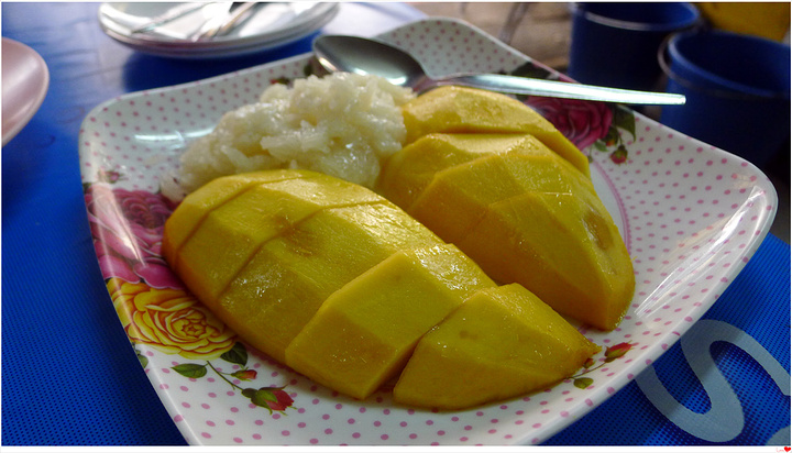 芒果糯米饭 他家的加星推荐菜~~ 味道很不错 主要是 这边的芒果肉质绵密细嫩 不会有那些一丝一丝的纹络 在嘴里的口感很好 糯米饭粘粘的 放了些椰汁糖和盐进去 总之是很好吃啦
